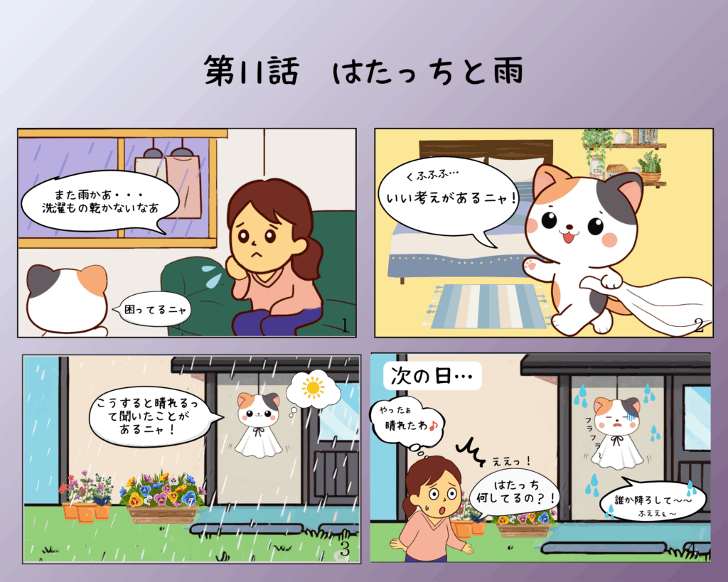 はたっちは自らてるてる坊主になることで雨を止ませようと計画しましたが、