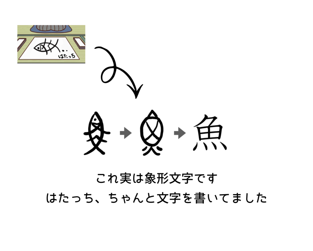 魚の絵を描いたと思いきや・・・なんと象形文字でした!